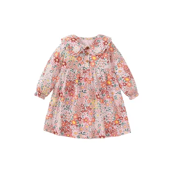 Factory Wholesale High-quality Spring Summer Children's Clothing O-Neck Floral Printed Bow Lace Ball Gown Knee-Length Evening